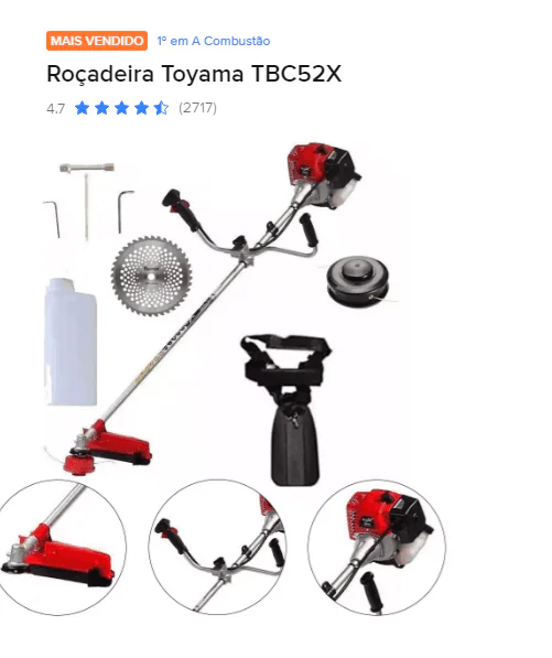 No entanto, minha opinião é que as duas máquinas são boas, embora a da toyama é de menor potência, ideal para serviços menores e serviços que não exige tanto, como roçagem em gramas pesadas e mato grande, muito denso.